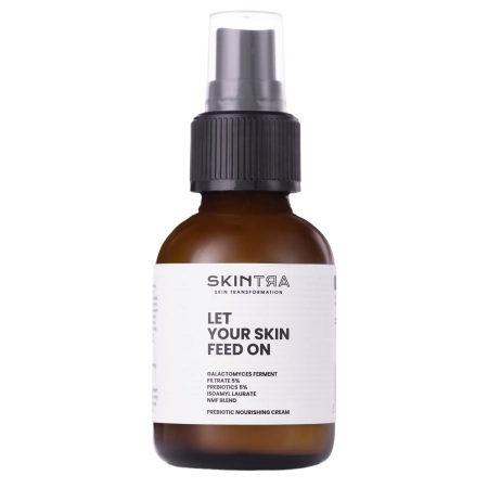 SkinTra - Let Your Skin Feed On - a lightweight nourishing cream with a wide range of care. Recommended mainly for people whose skin needs strong moisturization, but does not like "buttery" formulas. It contains components of NMF, or Natural Moisturizing Factor, as well as prebiotics and ferments that restore the balance of the microbiome. It deeply moisturizes and regenerates the skin in a physiological and active way. The contained ingredients replenish deficiencies that cause chronic or temporary dryness, thereby restoring the appropriate level of hydration and preventing re-drying. Antioxidant and anti-inflammatory substances accelerate regeneration mechanisms. The formulation was composed to highly reduce comedogenic potential, and at the same time, to generate enhanced nourishing properties. You will experience the full range of properties after several applications and they will last for a long time.